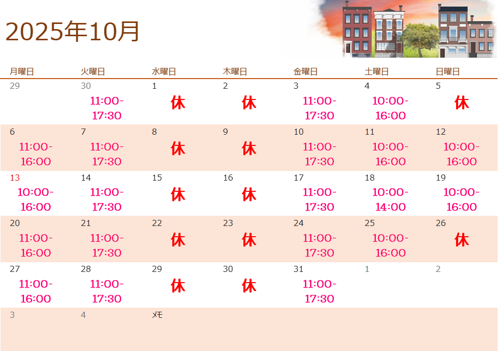 なお、水曜日の15時以降は毎週予約があるため、お受け出来かねます。