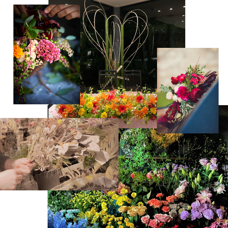 お客様の会話と花の魅力、作り手の技術と感覚のアンサンブルから生まれるデザインをお楽しみください。