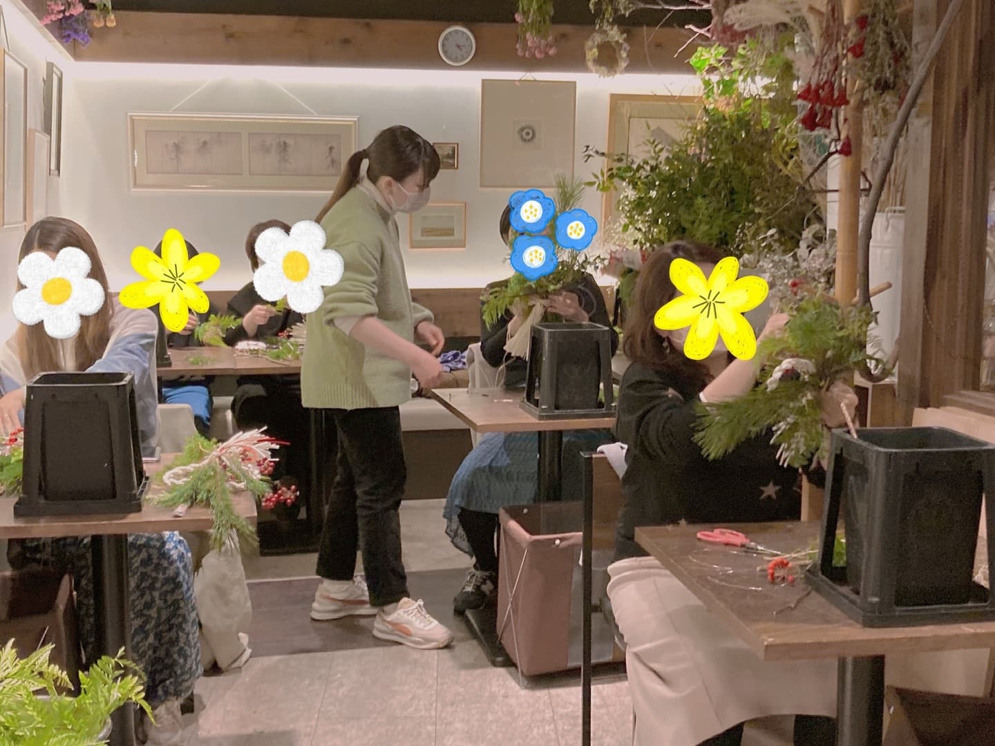 季節の花のブーケやアレンジメント、ドライスワッグを皆さんと一緒に創ります。こだわりのお茶菓子とコーヒー&ティーアドバイザーの資格を持つ代表が淹れた紅茶タイムもございます。